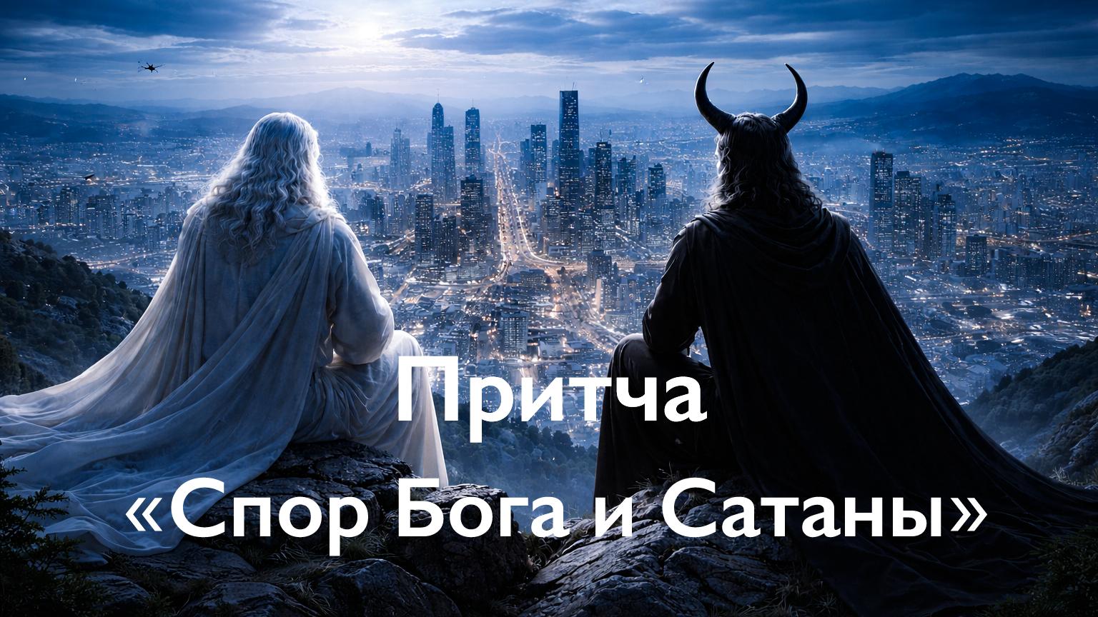 На вершине горы сидели Бог и Сатана. Под ними раскинулся город — живой, шумный, пульсирующий. Машины спешили по дорогам, люди торопились, спорили, торговались, обманывали, улыбались и злились. Город жил своей привычной жизнью. Сатана усмехнулся и сказал: — Посмотри на них. Они заняты с утра до ночи. Каждый думает о своём: как заработать, как обогнать, как удержать, как отобрать. Они называют это жизнью. Иногда — ради этого — они убивают друг друга. Скажи честно, на что ты надеешься? Они никогда не повернутся в твою сторону. Бог долго смотрел вниз и ответил спокойно: — Раньше я надеялся на правила. Я давал им законы, наставления, заповеди. Я говорил, как жить правильно, что можно и что нельзя. Но человеку трудно жить, постоянно сверяясь с правилами. Он боится ошибиться. Боится быть неправильным. Он живёт в чувстве вины и ожидании наказания. Эти правила переписывали, толковали, искажали. Они стали причиной споров, войн и разделений. Путь ко мне превратился в испытание, которое почти никто не мог пройти.